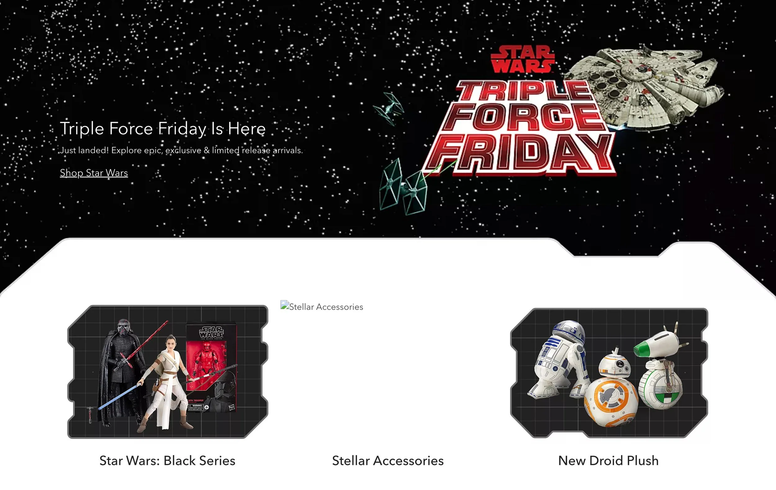 Celebrating the merchandise release for Star Wars: The Rise of Skywalker with marketing content for email, social media, landing pages, and in store.